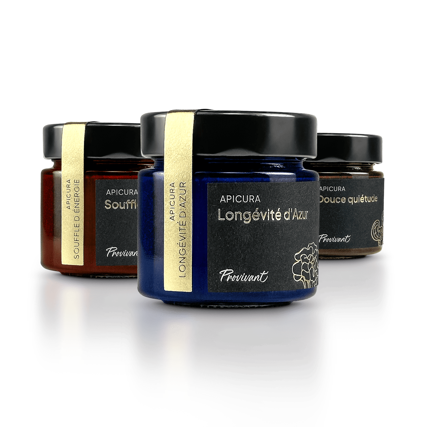 Découvrez notre Pack Vitalité & Équilibre Apicura, une synergie de trois élixirs naturels pour soutenir votre bien-être au quotidien. Ce trio exclusif réunit Longévité d'Azur (phycocyanine & maitake), pour renforcer vos défenses naturelles et favoriser la régénération cellulaire, Souffle d'Énergie (cordyceps & cassis), pour stimuler votre énergie et améliorer votre endurance, ainsi que Douce Quiétude (reishi & noisette), pour apaiser l'esprit et favoriser un sommeil réparateur. Un ensemble harmonieux de champignons médicinaux et d’actifs naturels puissants, conçu pour accompagner votre corps et votre esprit dans chaque moment de la journée.